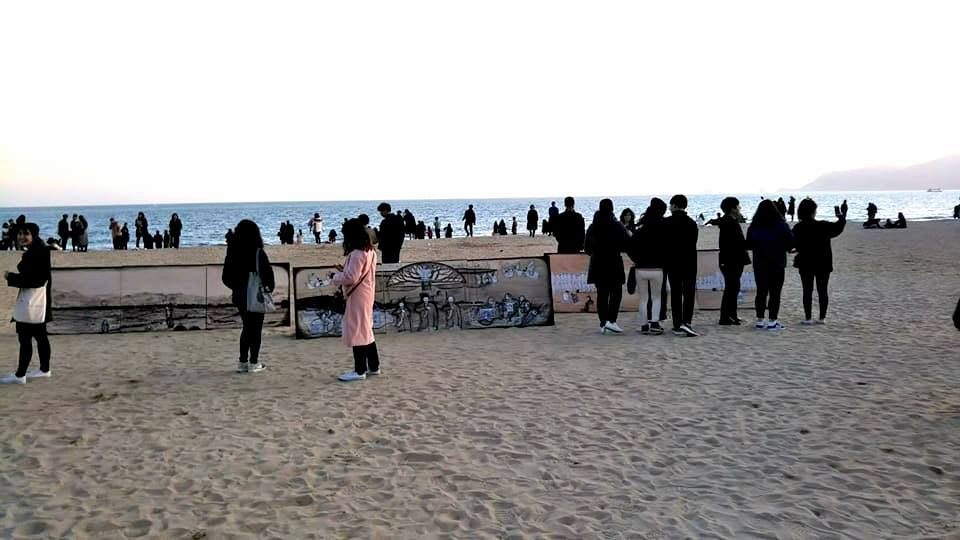 私は勝手に砂浜の上にこの絵を設置した。