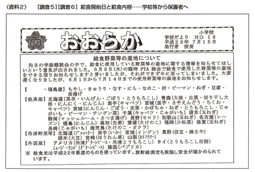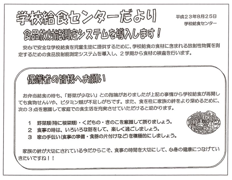 無検査でやはり福島産の野菜が給食に使用されていた時期があっ たこと―。